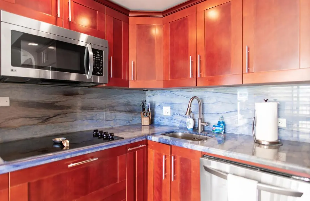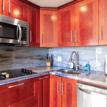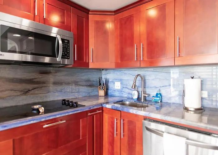 設備の整った台所があるから、顧客は自分で食事を作ることができます。 最寄りのバス停Kuhio Avenue + Lewers Streetは250メートルほどの距離にあります。 Four Paddle Condominium 2210 Thirty Plus Night Rentalアパートのプールで泳ぐこともできます。